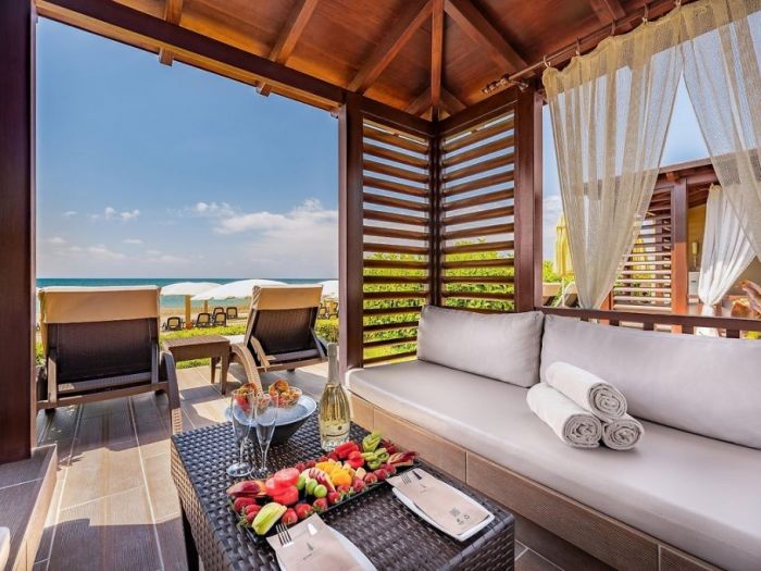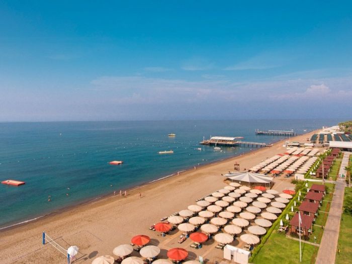 Плаж: Собствен пясъчен плаж, дълъг около 200м. Шезлонги, чадъри, матраци на плажа и при басейна- безплатно. Бар на плажа-безплатно. Павилиони на плажа-платено.