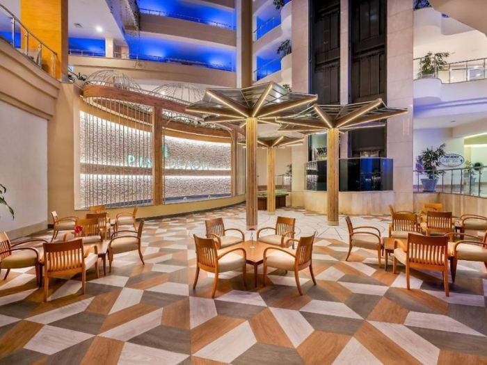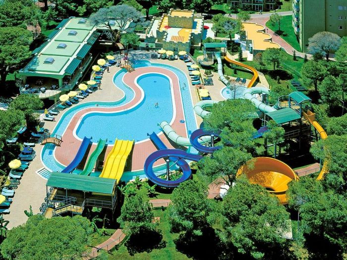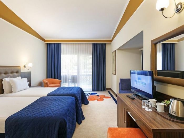 На територията: Основен ресторант, 3 а-ла карт ресторанта съгласно концепцията на хотела. ,4 бара, 2 открити басейна, басейн, 8 водни пързалки, СПА център с 1 отопляем вътрешен басейн с морска вода, фризьор (платен), 21 зали за конференции, WIFI-съгласно концепцията на хотела