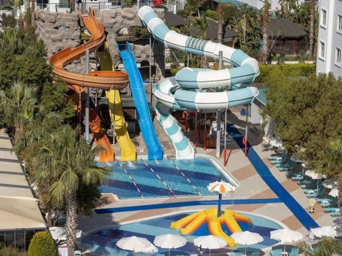 За децата: Детско меню, детска площадка, мини клуб (4-12 г.), детски басейн, водни пързалки, детско кино, детска дискотека, детски клуб на плажа, анимация.