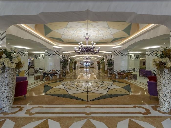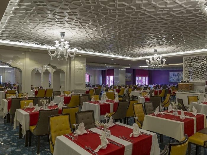 На територията на хотела: Основен ресторант, 3 а - ла - карт ресторанта (с предварителна резервация), 8 бара, 6 открити и 1 закрит басейн, 3 водни пързалки, магазини, SPA център, нощен клуб, конферентна зала. За децата: Детско меню, детски площадки, мини клуб (4-12 г.), 2 детски басейна, водни пързалки, мини дискотека, анимация, лунапарк, зоопарк. Безплатни услуги: Турска баня, сауна, фитнес, дартс, тенис на маса, плажен волейбол, аеробика, жива музика, анимация, интернет (в лоби). Платени услуги: Масаж, център за красота, фризьор, магазини, билярд, боулинг, интернет кафе, компютърни игри, химическо чистене, лекар, детегледачка, водни спортове, уроци по тенис, тенис на корт с осветление, скоростен интернет.