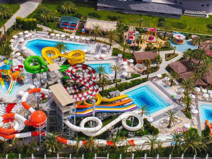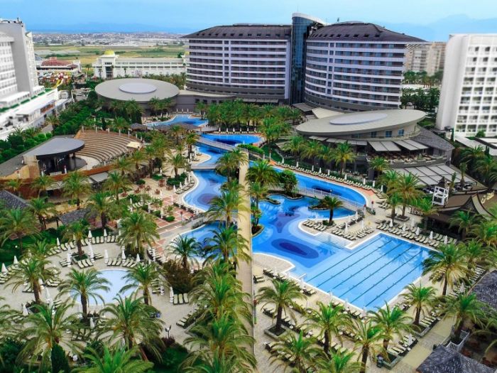 На територията на хотела: Основен ресторант – има и диетична кухня, 6 ресторанта a la carte (турски, италиански, далекоизточен, рибен, средиземноморски, стек-хаус - с предварителна резервация, платено), снек ресторант, 9 бара, сладкарница, дискотека, 4 открити басейна (един от тях Relax), 1 закрит басейн (работи от 01.11 до 31.03, с подгряване), аквапарк, СПА център, магазини, 4 конферентни зали, фризьорски салон, лекарски кабинет, пералня, химическо чистене.