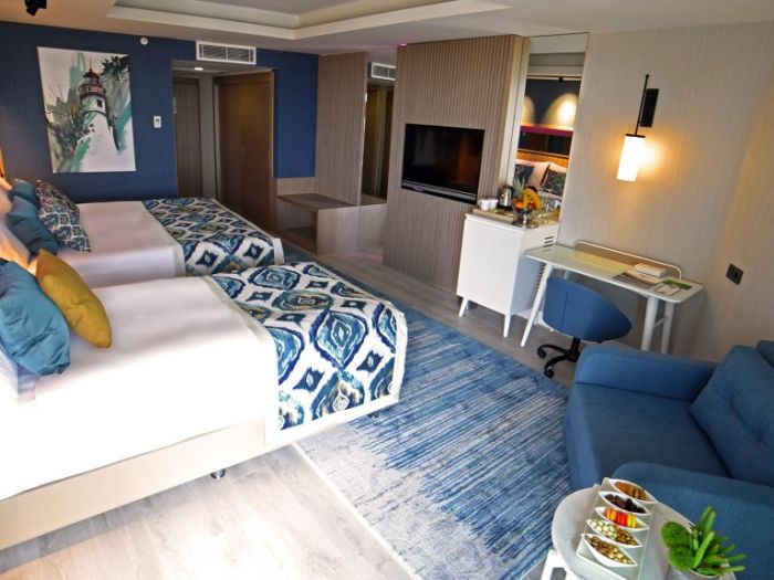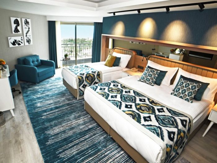 Разположение: Хотелът е разположен на 15 км от летището в Анталия и на 17 км от центъра, на брега на морето. Построен е през 2005 г. върху територия с обща площ от 72 000 м2. Състои се от една 10-етажна сграда. Направена е пълна реновация през 2019 г.