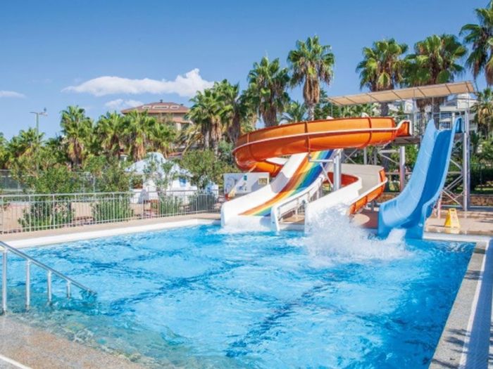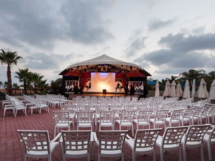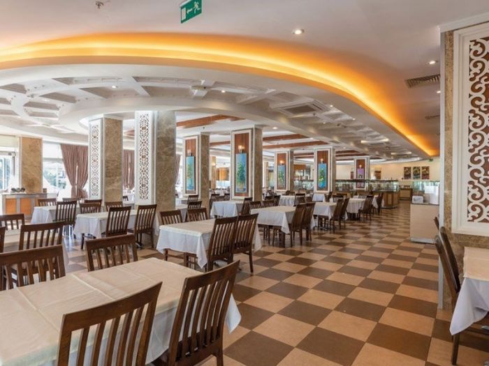 На територията на хотела: Основен ресторант, семеен ресторант, бар на плажа, градински бар, лоби бар, телевизионен кът, заседателна зала, фитнес зала, дискотека, търговски център, фризьорски салон, лекар, пералня, басейн, детски басейн, вътрешен басейн и басейн с пързалка. С различни анимационни програми, мини клуб, турска баня, сауна, масаж, мини голф, билярд, игрище за мини футбол, тенис на маса, тенис на корт, баскетболно игрище и водни спортове на плажа.