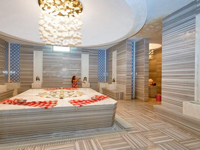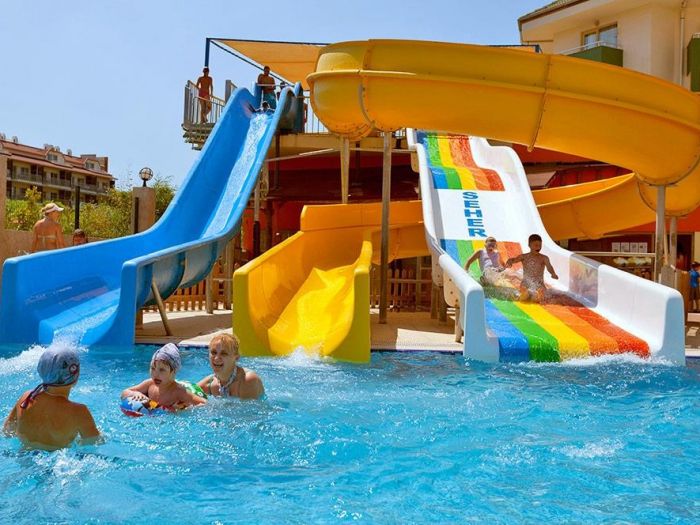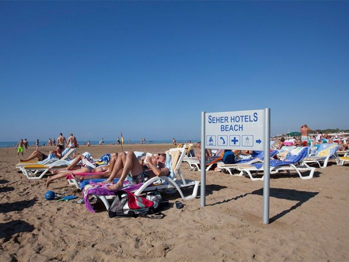 На територията на хотела: Основен ресторант, два а-ла-карт ресторанта, пет бара, два открити басейна, водни пързалки, SPA център със закрит басейн, турска баня и сауна, фитнес център, фризьорски салон, аеробика, баскетбол, тенис корт с твърдо покритие (в хотел Seher Resort & SPA), тенис на маса, дартс, боча, дискотека, безжичен интернет в лоби.