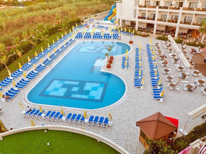 Разположение: Хотелът е разположен на 55 км от летище Анталия, на 6 км от старата част на Сиде, на 10 км от Манавгат, на 280 метра от брега на морето. Построен е през 2011 г. върху територия с обща площ от 14 000 м².