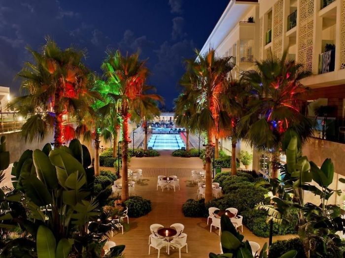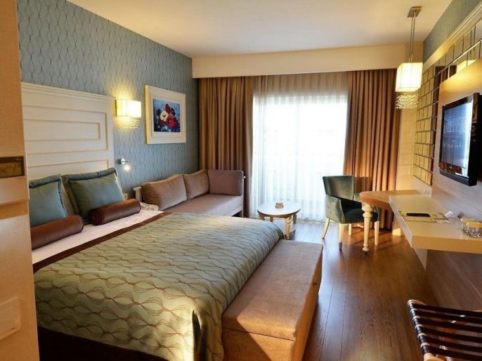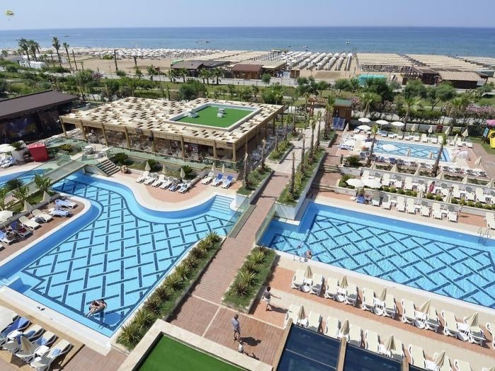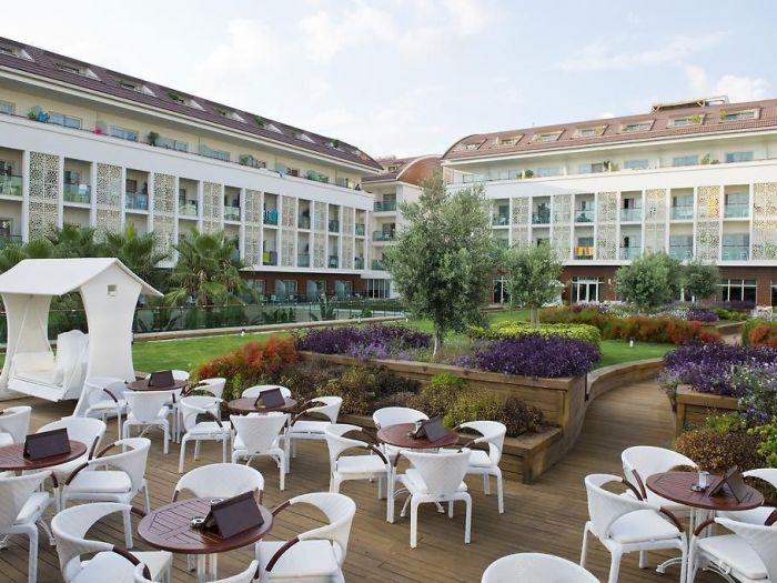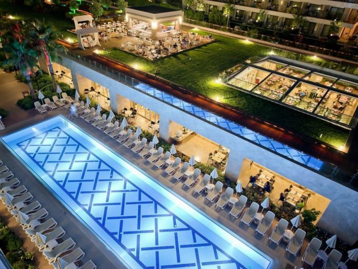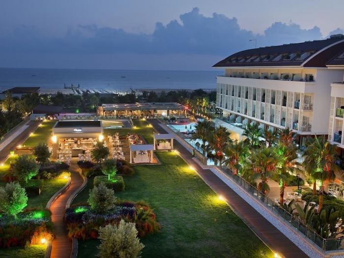 Хотелът разполага с 3 открити плувни басейна, вътрешен басейн, 5 а-ла-карт ресторанта(османска, средиземноморска, френска, мексиканска и европейска кухня), 5 бара, дискотека, сладкарница, СПА център, турска баня, сауна, масажи, анимация, плажен волейбол, йога, боулинг, билярд, тенис на маса, дартс, водни спортове, WI-FI. За децата: детски басейн, детски водни пързалки.