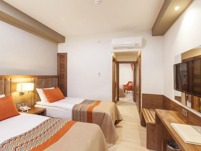 Хотелът разполага с общо 207 стаи, разположени в една 4-ри етажна основна сграда, от които 167 standard room ( 28 м2); Eco Room (без балкон, на първи етаж, 28 м2); 40 двустайни family room (2 спални с врата, 37 м2). Почистване на стаите - всеки ден, смяна на спалното бель - 3 пъти в седмицата.