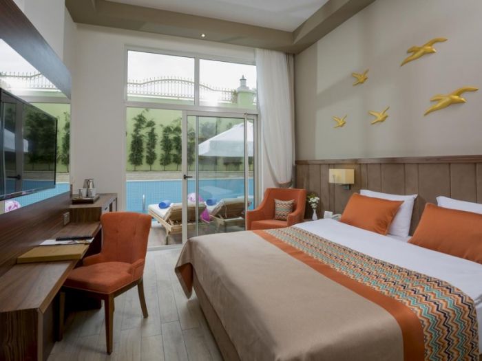 Основен ресторант, 2 а-ла-карт ресторанта (рибен, турски, международна кухня - с предварителна резервация), 4 бара, открит закрит басейн, 3 водни пързалки, СПА център, конферентна зала.