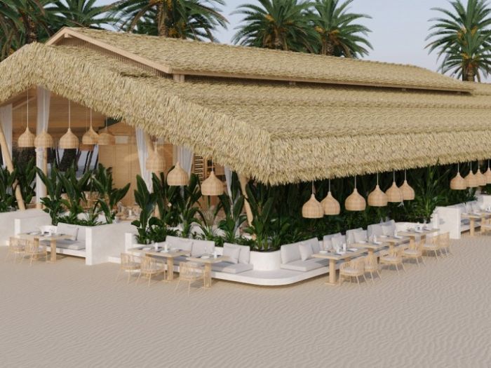 Собствен, пясъчен с дължина на плажната ивица 300 м. Чадъри, шезлонги, матраци и плажни кърпи на плажа и при басейна - безплатно.
