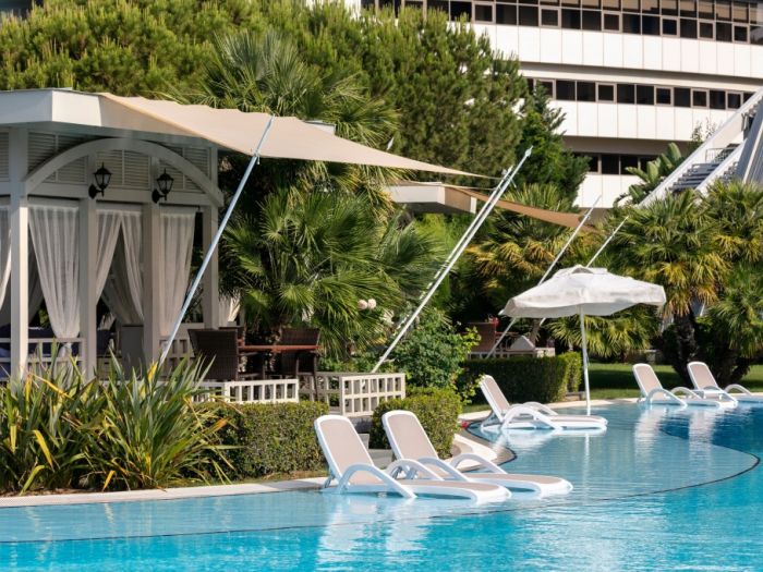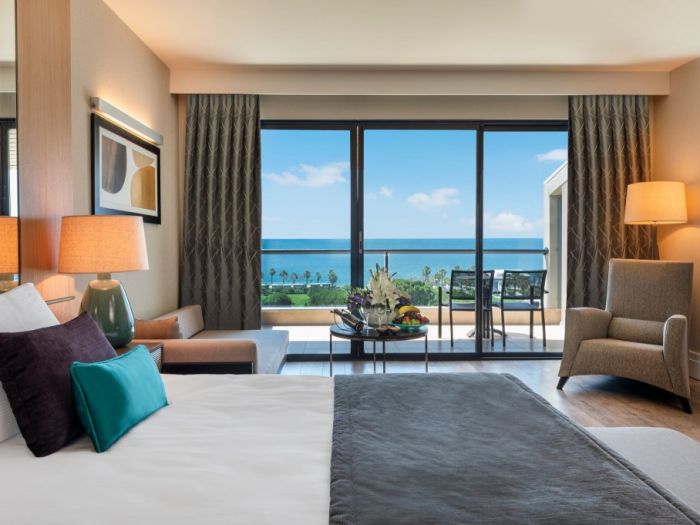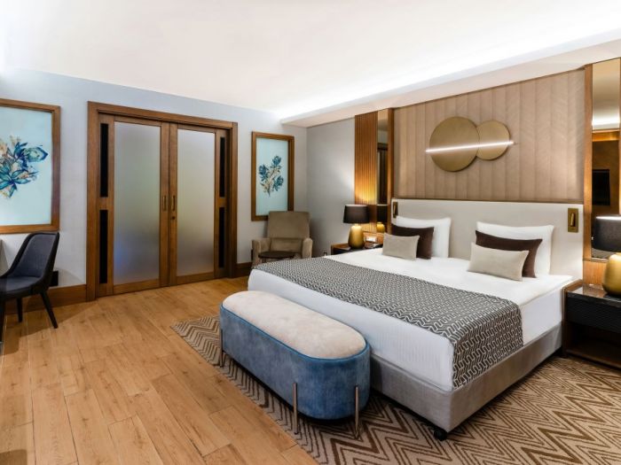 В стаите: Състои се от една основна 5 етажна сграда, към която има още пет 4-етажни сгради "Теrrace", шест 2-етажни блока "Lake" и отделно разположени VIP Villas. Хотелът разполага с общо 554 стаи оборудвани с централен климатик, телевизор, телефон, баня с душ или вана, сешоар, чехли и халати, сет за кафе и чай, мини-бар безплатно (разхладителни напитки, бира, чипс - ежедневно), сейф (безплатно), балкон, WI-FI (безплатно), под - паркет (или мокет). Почистване на стаите - ежедневно, смяна на спално бельо - 3 пъти седмично.