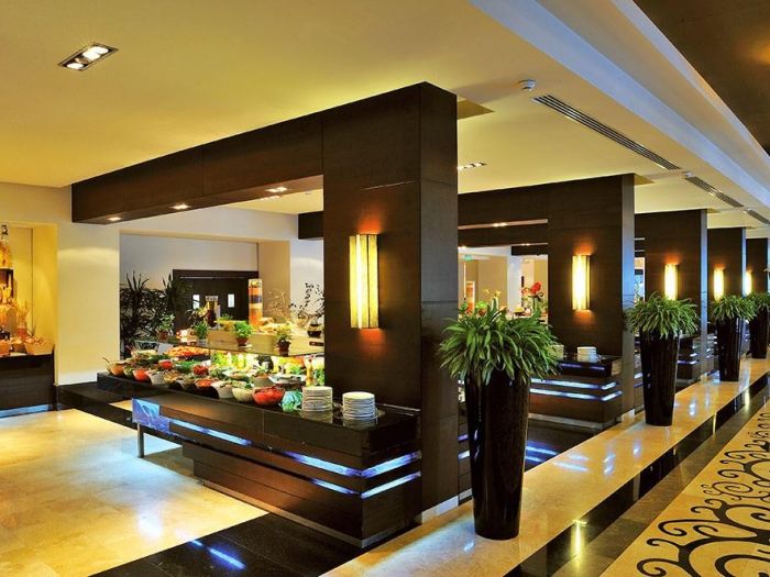 На територията на хотела: Основен ресторант (има диетична и вегетарианска храна), 6 ресторанти a la carte (турски и мексикански 1 посещение на 1 от тях, безплатно; барбекю, италиански, стек-хаус, рибен, далекоизточен - резервацията се заплаща), 2 снек ресторанта, 11 бара (един от тях работи 24 часа), сладкарница, 5 открити басейна (един от тях с олимпийски размери), 2 закрити басейни (единия с полуолимпийски размери), 6 водни пързалки, Спа център, магазини, лекарски кабинет, фризьорски салон, пералня, 17 конферентни зали, химическо чистене.