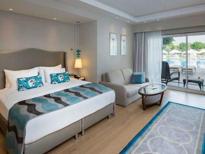 В стаите: Хотелът разполага с общо 594 стаи, разположени в една 6-етажна сграда Main Building, 7 триетажни блока Family Pool Suite и 17 двуетажни вили Villas. Стаи в основната сграда Main Building: 226 стандартни стаи Standard room(34 м2), 136 Superior room (39 м2), 103 Deluxe suite (с гледка към реката и голф игрището - 70 м2), 8 Corner suite (с гледка към реката и голф игрището, 2 спални, 1 баня - 82 м2), 10 Major suite (хол, спалня, баня - 82 м). Стаи Family Pool Suites (разположени в градината): 40 Family suite (2 спални, 1 баня - 80 м2), 28 Family pool balcony suite (разположени на втори и трети етаж с гледка към басейна, 2 спални, 2 бани - 80 м2).
