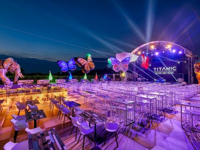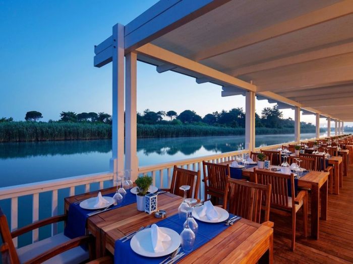 На територията на хотела: Основен ресторант, 6 а-ла-карт ресторанта (с предварителна резервация - турски, италиански, рибен; грил ресторант, ресторант-лодка, кабана ресторант - платени, съгласно концепцията на хотела), 10 бара (през зимата работят 6 бара), 4 открити басейна (от които 1 с морска вода и подгряване през зимния период и 1 с олимпийски размери) и 1 закрит басейни 1 закрит детски басейн, аквапарк (4 пързалки за възрастни и 6 за деца), сладкарница, нощен клуб, жива музика, СПА център, Wi-Fi (безплатен).