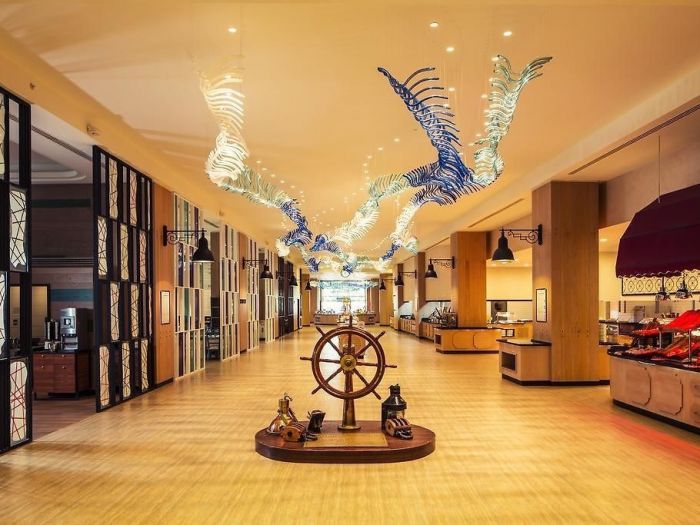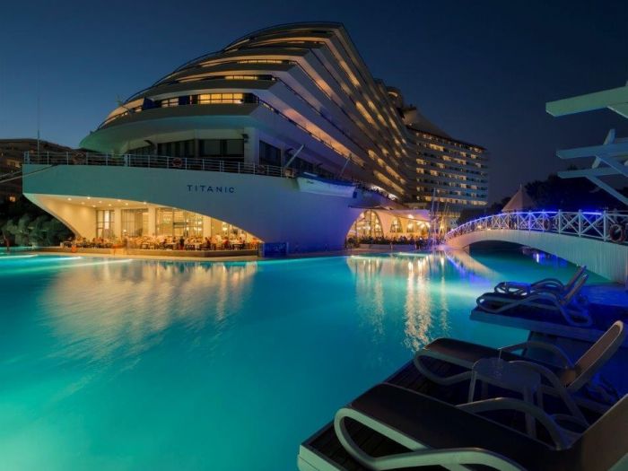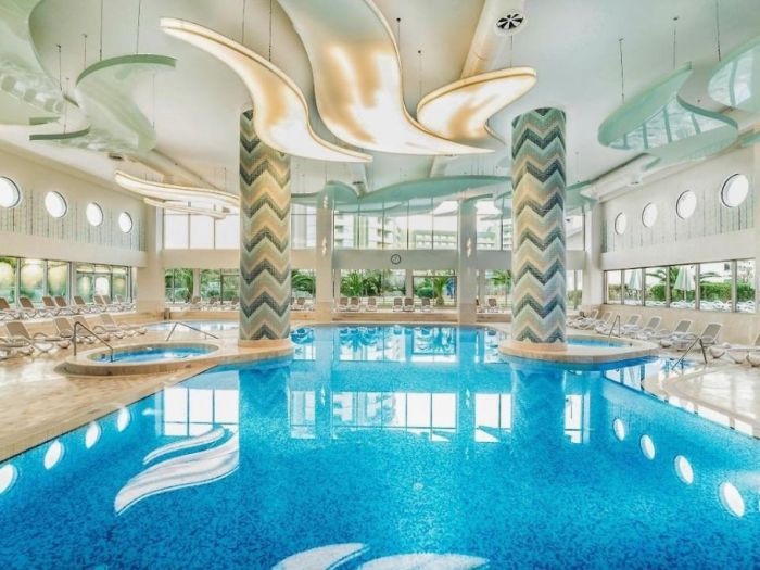 На територията на хотела: Основен ресторант, 3 а - ла - карт ресторанти (италиански, турски и рибен), 3 открити басейна, закрит басейн, закрит детски басейн, водни пързалки, барбекю, сладкарница, лоби бар , диско бар, витамин бар, боулинг бар, амфитеатър, кино, музика на живо, дискотека (безплатно).