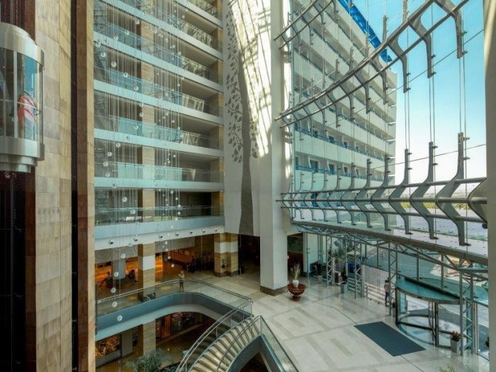 В стаите: Хотелът разполага с 586 стаи. Всички стаи са оборудвани с: централен климатик, телевизор, телефон, сейф (безплатно), мини-бар (безплатно), килим, балкон, баня с душ, сешоар, интернет достъп (срещу заплащане). Почистване на стаите - всеки ден, смяна на спалното бельо – 3 пъти в седмицата, смяна на кърпите – всеки ден.