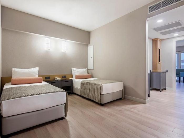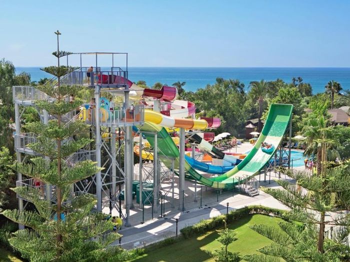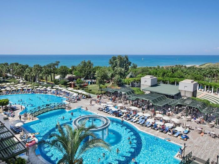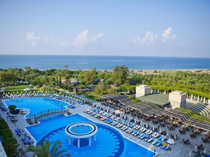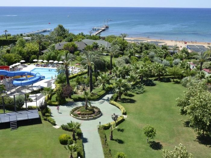 На територията на хотела: Хотела разполага с основен ресторант, 7 бара, 2 a-ла-карт ресторанта (османски и средиземноморски), плувен басейн, вътрешен басейн, водни пързалки, анимация, дартс, тенис на корт, тенис на маса, жива музика, плажен волейбол, боулинг, аеробика, водни спортове, СПА център, сауна, парна баня, масажи, турска баня, релакс басейн, За децата: детски басейн, детски водни пързалки, мини клуб.