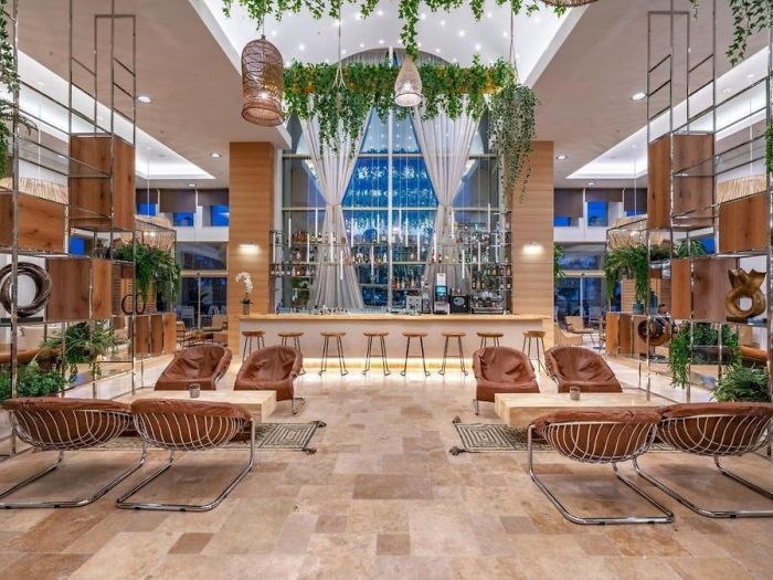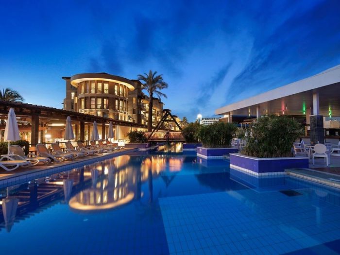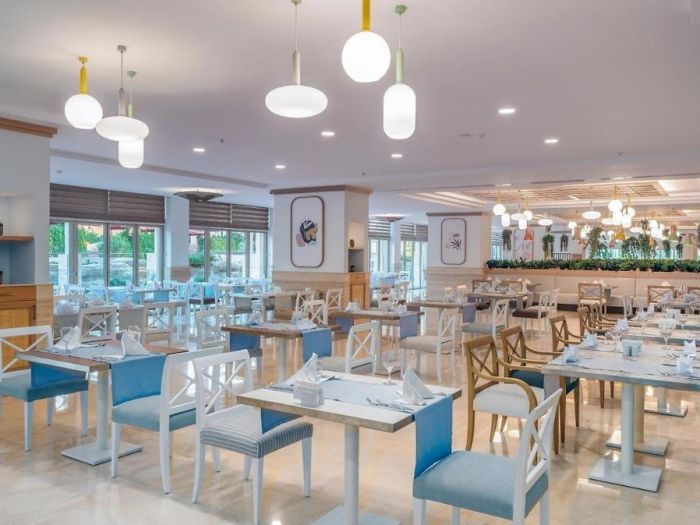 На територията: Основен ресторант, 3 A la carte ресторанта, 3 бара, 4 конферентни зали, 3 басейна (1 закрит и 2 открити), 3 водни пързалки, тенис на корт, салон за красота, СПА център, лекар, интернет в лобито на хотела (безплатно).