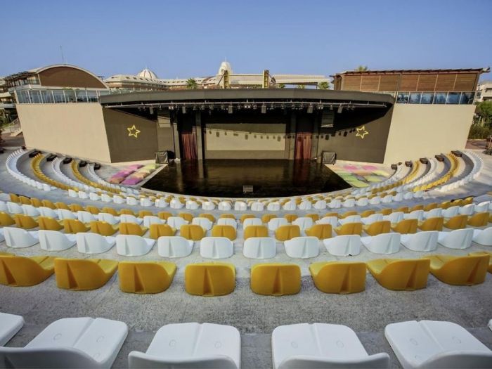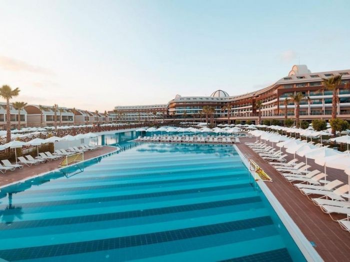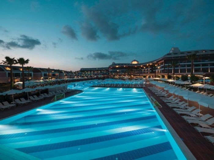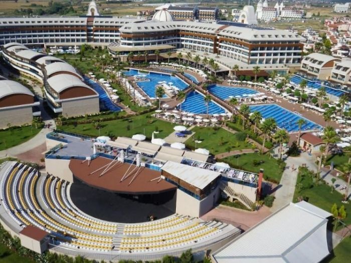 На територията на хотела: Основен ресторант, 7 ресторанта a la carte (бързо хранене, турска кухня, морски дарове, международна кухня, италианска кухня - с резервация; японска кухня и стек хаус - с резервация, платено), 5 бара, сладкарница, 3 снек ресторанта, 7 открити басейна (има басейн тип relax 16+), закрит басейн, Аквапарк, Спа център, магазини, фризьорски салон, конферентна зала.