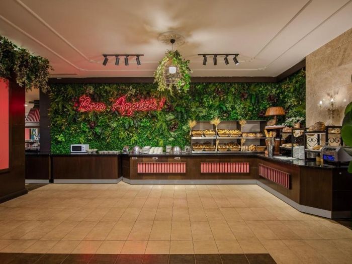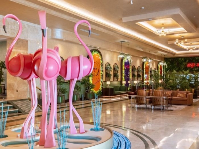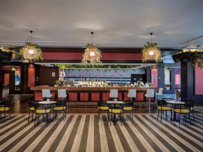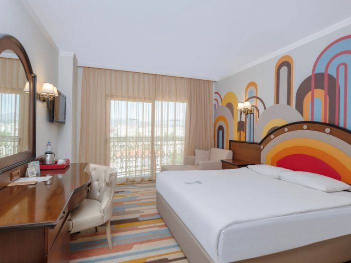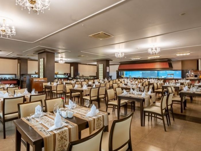 Хотела разполага с основен ресротант, 2 а-ла-карт ресторанта (платени), 4 бара, от който единия работи 24 часа, 2 открити басейна за възрасни, 2 открити басейна за деца, 2 заскрити басейна за възрастни, 1 закрит басейн за деца, вътрешните басейни работят и през зимата. За деца: детска дискотека, спортни игри, игри в басейна, мини игрален клуб (4-12г.), йога за деца, гимнастика, водна аеробика, дартс за деца, боулинг за деца, специално шоу за деца което се организира 1 път в седмицата, детско кино, занимание свързани с рисуване, анимация. Безплатни услуги: тенис на маса, WIFI, дартс, йога, аеробика, зумба, жива музика, анимациия. Платени услуги: лекарски услуги, химическо чистене, пералня, детски столчета/колички, а-ла-карт ресторанти, магазини, водни спортове, специални организации за рожден ден/сватба/ предложение за брак/ концепция за меден месец.
