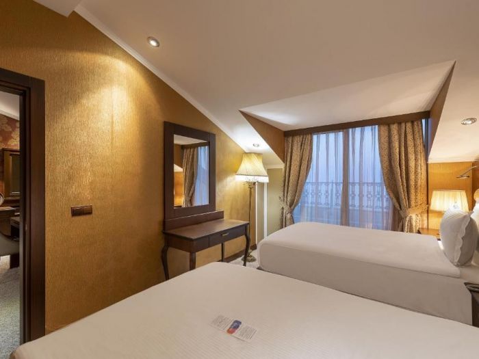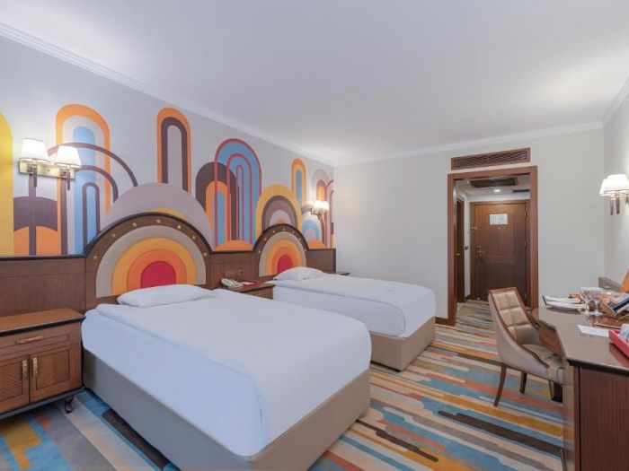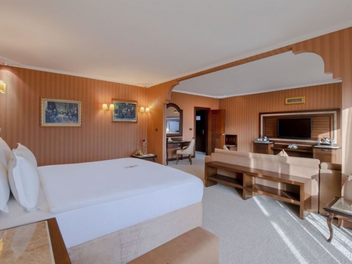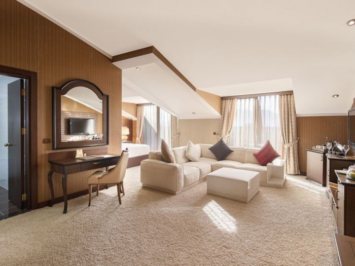 Хотела разполага общо с 334 стаи. Всяка стая е оборудвана с бяня, тоалетна, вана, телевизор, сейф (беплатно), халати и чехли за баня, сешоар, комплет с чай и кафе, телефон, безплатен WIFI, минибар. Почистване на стаите- всеки ден. Смяна на чаршафи и спално бельо- през ден.