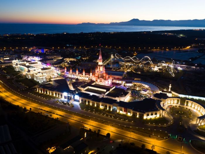 На територията на хотела: Основен ресторант, 3 бара (на територията на хотела); Шопинг алея - магазини на известни брандове, 5D кинозала, канал, повече от 35 ресторанта и кафета; Тематичен парк - 11 заведения за хранене на територията на парка, 40 водни пързалки, Dry Park (24 атракционни без вода, от тях атракциона Hyper Coaster: с височина 61 м, развива скорост до 115 км/ч), Делфинариум, 5D-кинотеатър, спа-център (с отворена женска зона), фитнес център, фризьорски салон, пералня, химическо чистене, лекарски кабинет; парк с животни (делфини, бял кит, акули, моржове, пингвини, шоу с участие на животни).