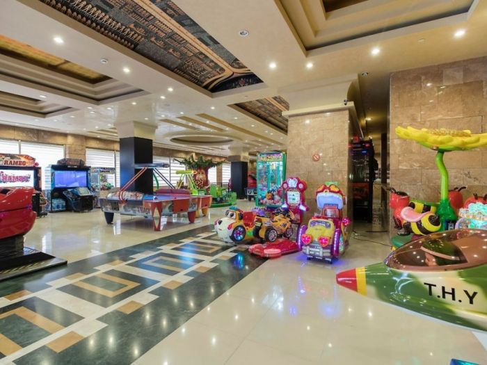 За децата: анимационно шоу за деца, детски басейни и пързалки в парка, детски колички (безплатно), бебешки креватчета (безплатно), услуги за гледане на деца (срещу допълнително заплащане), използване на всички игрални автомати на -1 етаж (безплатно).