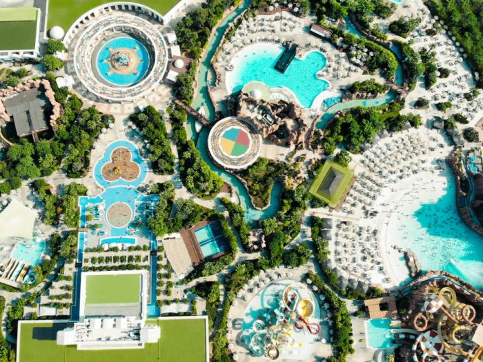 Rodeo, плуване с делфини, Dry Park (23 атракциони без вода; Hyper Coaster - височина на атракционите 61 м, скорост на движение - 115 км/ч).