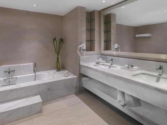 Всички стаи са климатизирани и имат просторен балкон или тераса. Всяко помещение включва плоскоекранен телевизор и кът за сядане. Срещу допълнително заплащане гостите могат да използват минибара. Осигурени са също удобства за приготвяне на чай/кафе и сейф.