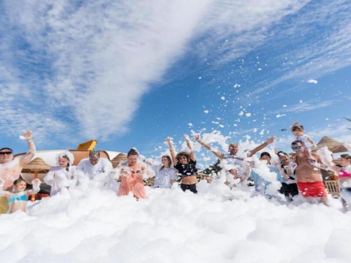Аквапарк с 4 пързалки за възрастни и 6 пързалки за деца, плажен волейбол, водни спортове, аква център, център за гмуркане, шах, дартс, билярд, тенис на маса, многофункционално игрище.Напълно оборудван детски клуб и детска площадка, включително частен плувен басейн. Предоставят се безплатно чадъри и шезлонги.