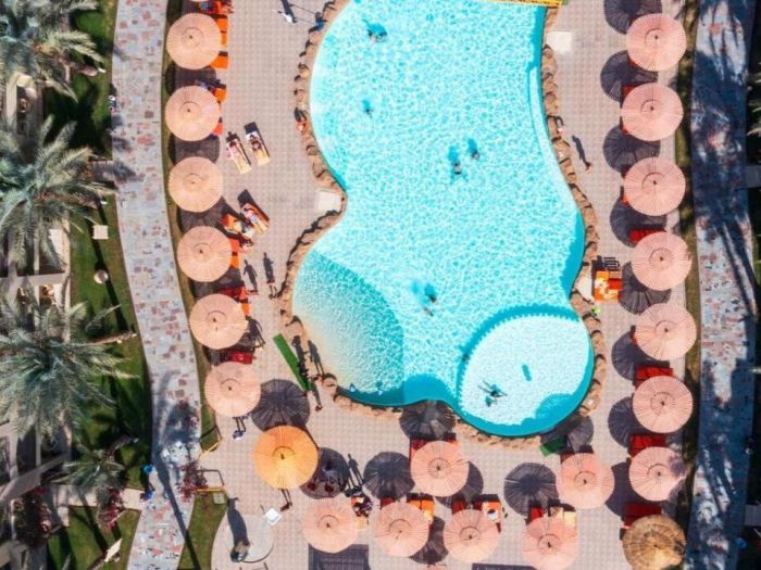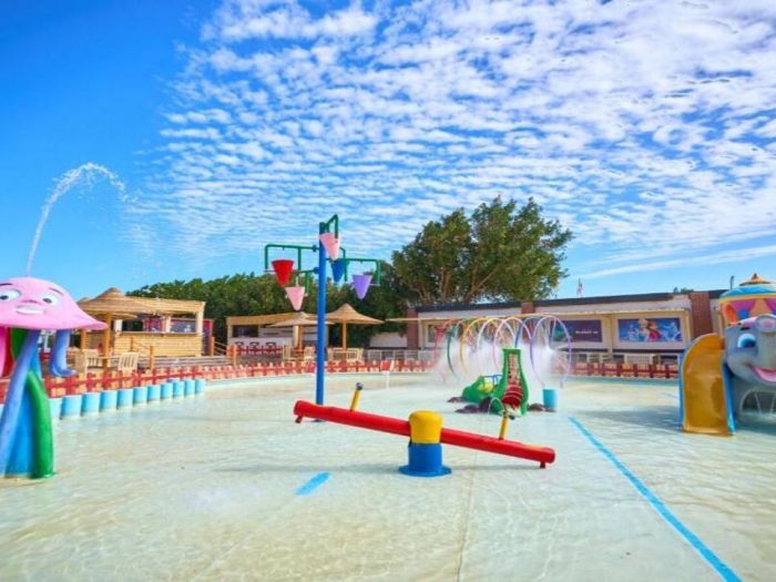 Пет открити плувни басейна и един отопляем басейн през зимата, обхващащ 551 кв.м., джакузи с прясна вода, 451 кв.м. и 429 кв.м., отделен детски басейн 176 кв.м.
