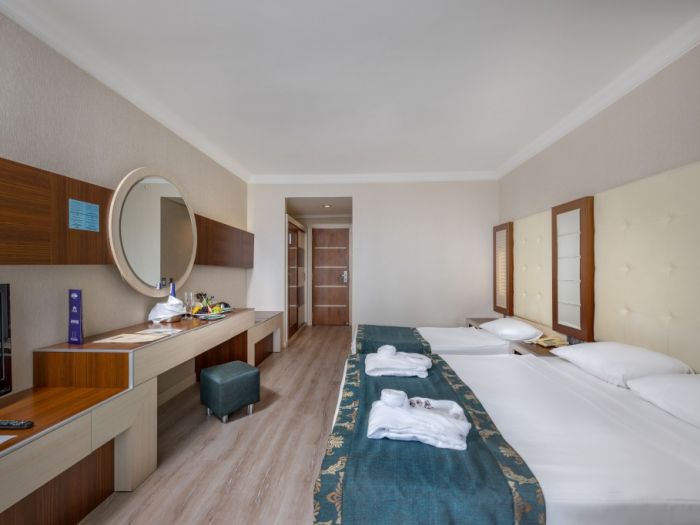 На територията: основен бюфет ресторант, 3 а-ла карт ресторанта: турски, рибен и италиански. Клиентите имат право на 1 безплатно посещение на 1 от ресторантите при минимум 7 нощувки и с предварителна резервация; 4 бара, 2 открити и 1 закрит басейн, водни пързалки, СПА център, фитнес зала, анимация, мини клуб, билярд, тенис на маса, табла, настолни игри, тенис корт, футболно игрище, водни спортове, супер маркет, фризьорски салон, бижутериен магазин, конферетни зали.