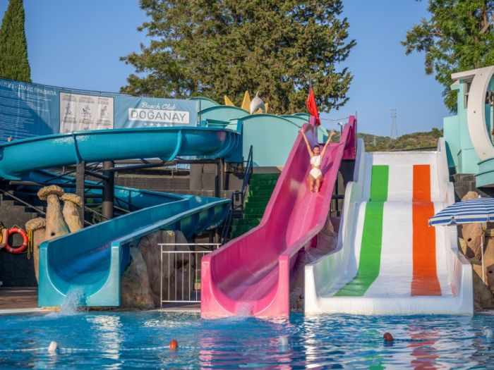 За децата: мини клуб (4-12г), анимация, детска площадка, детски басейн, кино, мини лунапарк, водни пързалки