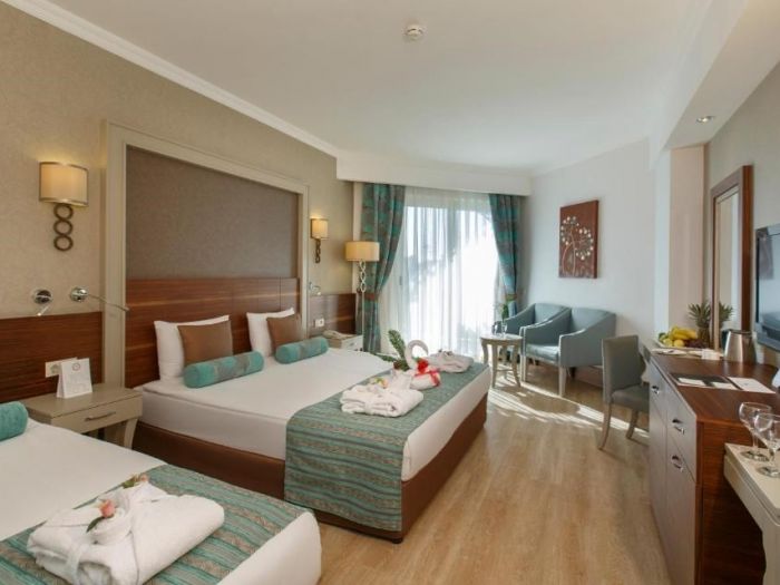 На територията на хотела: Основен ресторант, а-ла-карт ресторанти (с предварителна резервация), барове, дискотека, два открити басейна, две водни пързалки, SPA център с турска баня, парна баня и сауна, фитнес център, анимационна програма, спортни и развлекателни дейности, търговски център, конферентна зала, безжичен интернет в публичните части на хотела и в стаите.