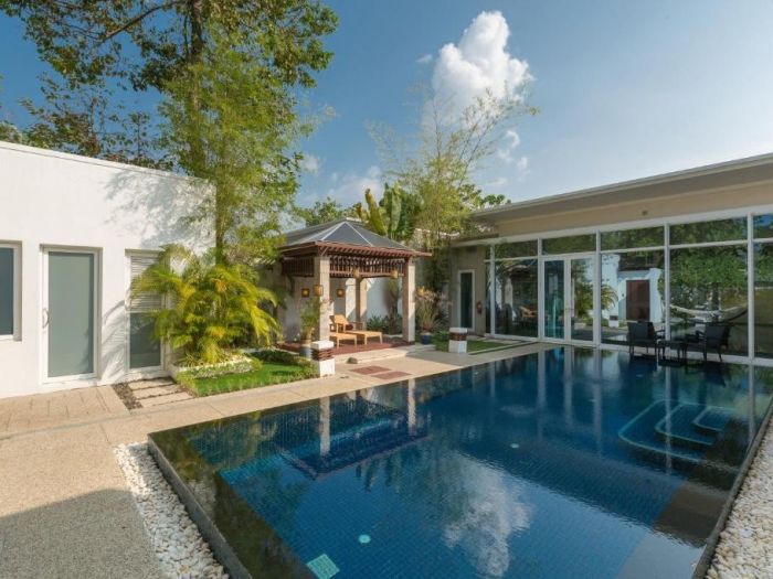 2 Bedroom Pool Villa with Kitchen – 390 м2, изглед към градината. Частният басейн е топ характеристика на тази вила. Тази просторна вила разполага с една всекидневна с кухненси бокс, две отделни спални и две бани с безплатни тоалетни принадлежности и кърпи. Стаята разполага с климатик, плоскоекранен телевизор с кабелни канали, минибар, сет за приготвяне на кафе и чай, сейф.
