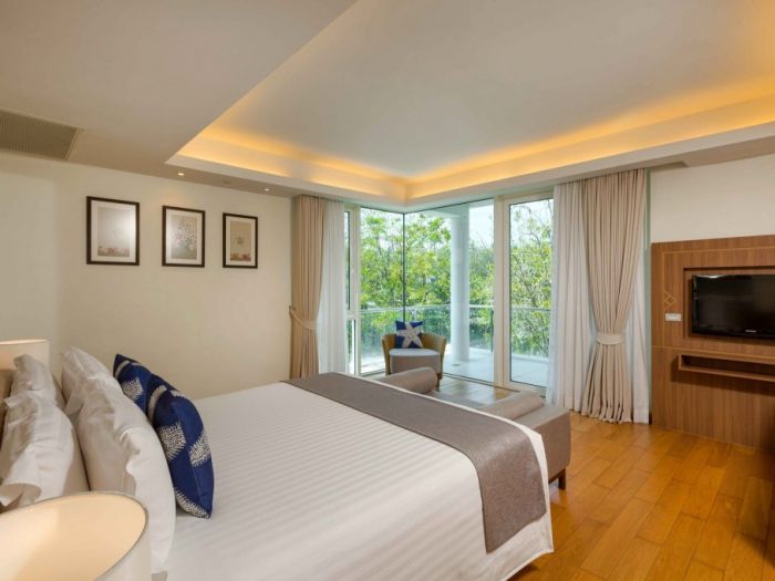 2 Bedroom Ocean Front Pool Villa with Kitchen – 420 м2, гледка към океана и частен басейн. Тази просторна вила се състои от една всекидневна с кухненси бокс, две отделни спални и две бани с безплатни тоалетни принадлежности и кърпи. Стаята разполага с климатик, плоскоекранен телевизор с кабелни канали, минибар, сет за приготвяне на кафе и чай, сейф.