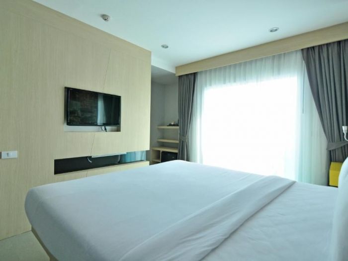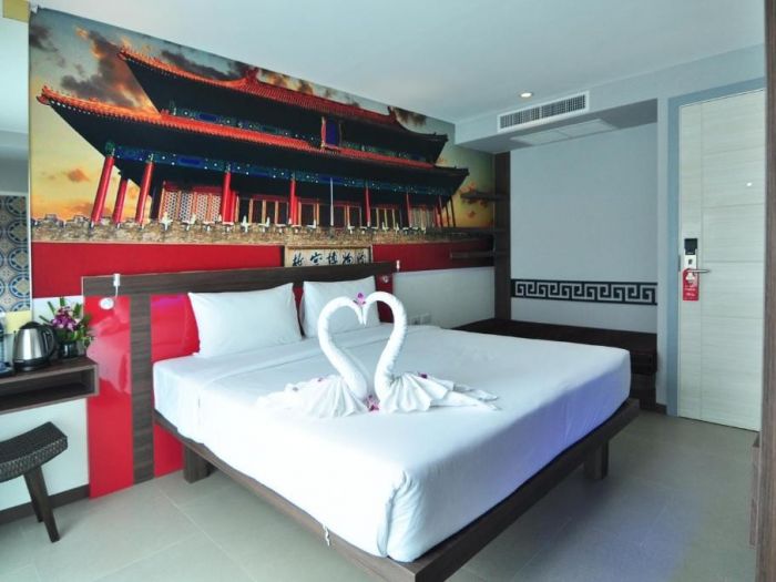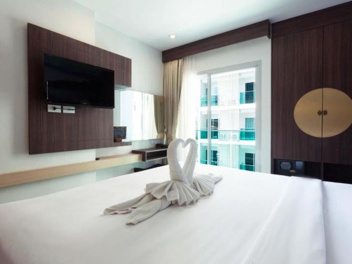 Deluxe Room: 24м2, само легло king-size и баня с душ и вана, сешоар (при запитване), самостоятелен балкон с гледка към град Патонг, LCD телевизор, тераса/балкон, сейф, безплатен Wifi интернет.