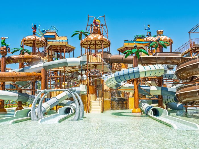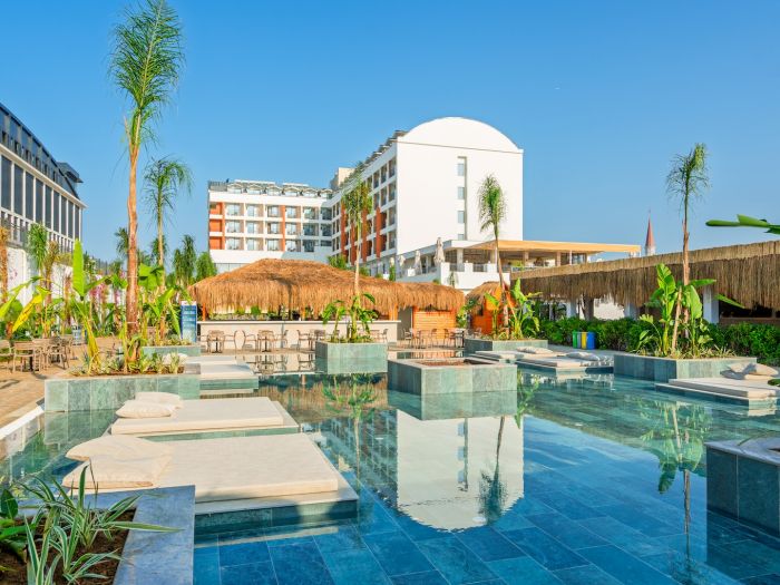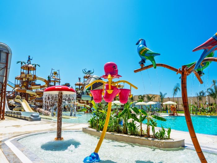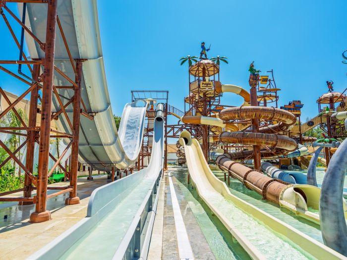 Основен ресторант (тематични вечери 7 дни в седмицата), 2 а-ла-карт ресторанта (турски, интернационален – безплатно посещение с предварителна резервация), ресторант на плажа, снек бар, сладкарница, 8 бара, 7 открити и 1 закрит басейн, аквапарк с 16 водни пързалки, СПА център, дискотека, магазини.