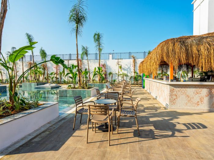 Хотелът разполага с общо 344 стаи, разположени в две 7-етажни сгради, от които 248 Deluxe Rooms (26 m²), 20 Deluxe Jacuzzi Rooms (разполагат с джакузи на балкона - 26 m²), 25 Deluxe Family Rooms (2 отделни спални със свързваща врата, 2 балкона - 47 m²), 22 Deluxe Suite Rooms (1 двойно, 1 единичо легло, 1 дневно легло - 43 m²), 20 Deluxe Swim-Up Rooms (с директен достъп до басейн от терасата - 29 m²), 3 Deluxe Disabled Rooms (пригодени за хора с ограничена подвижност - 26 m²).
