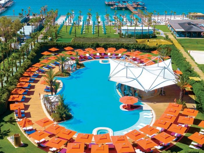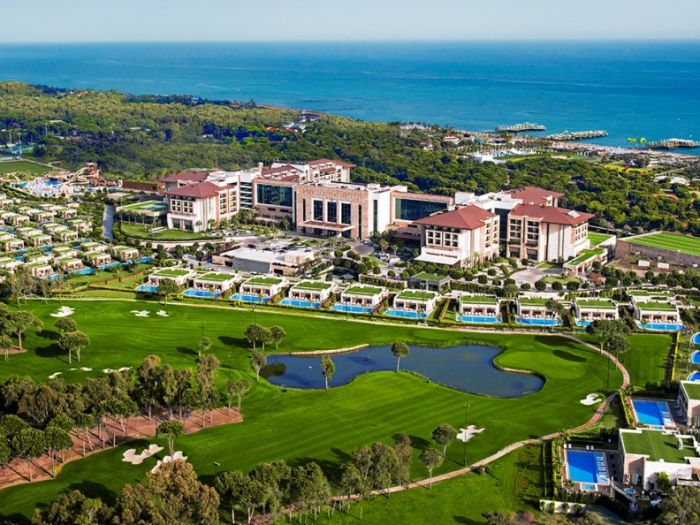 На територията на хотела: Хотелът предлага разнообразие от басейни и зони за релакс. Те включват основен открит басейн (2040 кв. м, отопляем), басейн с морска вода (1490 кв. м), безкраен басейн на покрива (900 кв. м) с ресторант, бар и фитнес клуб, релакс басейн (490 кв. м), басейн с вълни (2400 кв. м) и закрит басейн (240 кв. м). В хотела има много ресторанти: основен ресторант, ресторант на покрива (18+), паназиатски, славянски, арабски, перуански Maia, 4 ресторанта на плажа (гръцки, френски, италиански, средиземноморски и международен), както и лаундж бар, зона за отдих, ресторант за здравословна храна, тапас и вино, мексикански ресторант, американски ресторант и ресторант до аквапарка. Има също така павилион за храна, сладкарница, пекарна, 15 бара и 2 кафенета. Гостите имат достъп до безплатен Wi-Fi, банкомат, лекарски услуги (срещу заплащане), перални услуги (срещу заплащане), услуги с личен шофьор и трансфер до тематичния парк The Land of Legends (безплатен). Хотелът разполага с 2 конферентни зали с площ от 105-128 кв. м. м.