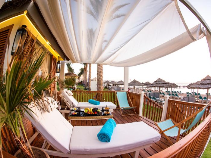 Собствен, пясъчен и коралов плаж, с дължина 330 м, кей (147 м), безплатен шатъл до плажа. Чадъри и шезлонги на плажа и на басейна - безплатно. Плажни кърпи - безплатно.