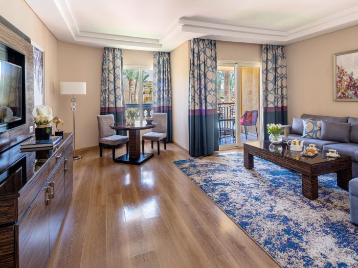 Стаи Main Building: 262 Hotel Superior Room (32 кв.м), 194 Deluxe Room (36 - 40 кв.м), 18 Premium Room (36 - 40 кв.м, 10 Swim up (с излаз към басейна - 36 - 40 кв.м), 76 Family Room (2 спални, 1 баня – 48 - 58 кв.м), 125 Junior Suite (1 спалня + диван , 1 баня – 53 - 58 кв.м), 26 Executive Suite (1 спалня + хол , 2 бани – 80 кв.м), 3 Panorama Suite (1 спалня + диван , 1 баня – 53 - 58 кв.м).
