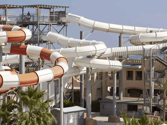 Основен ресторант, 2 а-ла-карт ресторанта (италиански- безплатен, азиатски – срещу заплащане/с предварителна резервация, съгласно концепцията на хотела), 4 бара, 10 открити басейна, аквапарк, приключенски парк, конферентни зали, магазини.