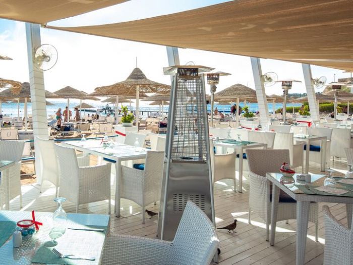 Собствен, пясъчен, риф, кей. Чадъри, шезлонги, матраци и плажни кърпи на плажа и при басейна - безплатно.
