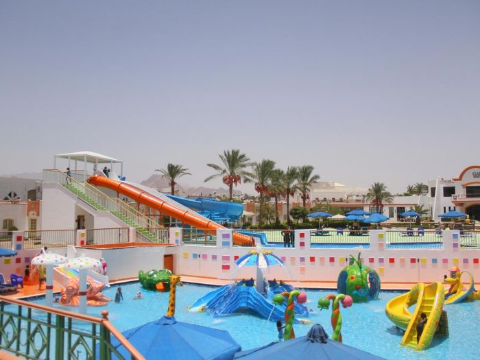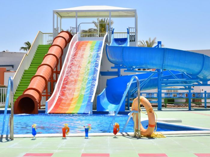За децата: 3 детски басейна, 14 водни пързалки, детска площадка.