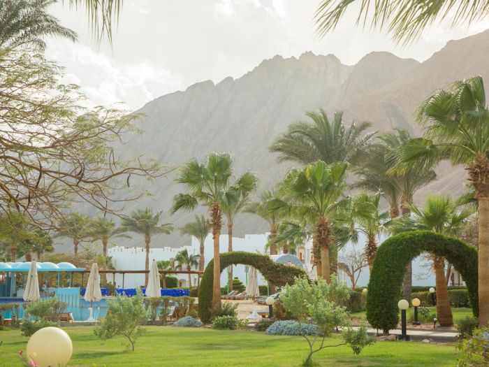 Намира се на 85 км от летище Шарм ел Шейх, на 19 км от центъра на Дахаб, на брега на морето.