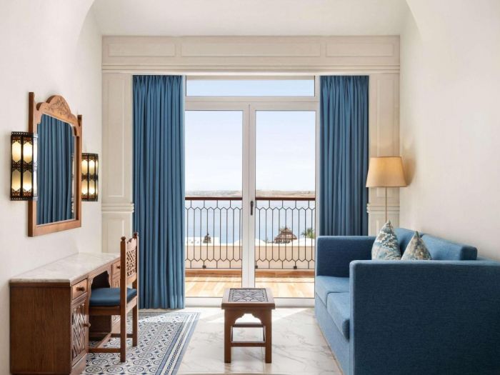 Хотелът разполага със 172 стаи, 4 луксозни вили със собствени инфинити басейни и 18 свързани стаи. Classic Room (24 кв.м.), Deluxe room (30 кв.м.), Superior room (35 кв.м.), Comfort room (35 кв.м.), Villa (260-370 кв.м. с 3 спални, хол, кухня и собствен басейн). Всички помещения са оборудвани с климатик, телевизор, телефон, баня с вана/ душ, сешоар, сейф, минибар, кана за кафе и чай, френски балкон, балкон/тераса.