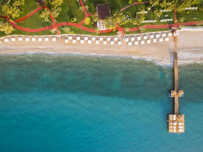 Плаж: Разположеният край морето хотел Rixos Beldibi има частен плаж с безплатни чадъри и шезлонги.