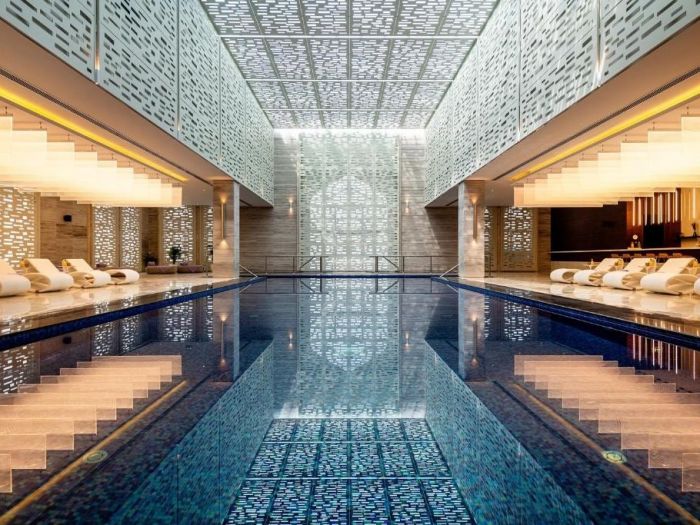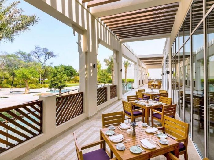 Комфортен спа хотел с просторна зелена площ в Доха. Идеален за семейства.