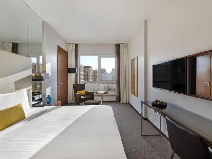 Проектирана за комфорт и плавност, тази стая с двойно легло съчетава интелигентни технологии с интелигентно използване на пространството. Удобно легло, отделен кът за сядане и работно бюро улесняват работата или релаксацията.