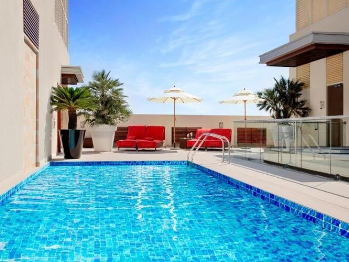 На територията на хотела: Хотелът разполага с открит плувен басейн, бар, ресторант, рецепция, асансьор, две конферентни зали, денонощен магазин с концепция „храна за вкъщи“, както и услуги за пране и химическо чистене.